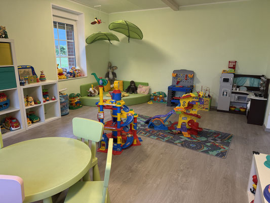 Hier ist das große Spielzimmer mit vielen Spiel- und Spaßangeboten.